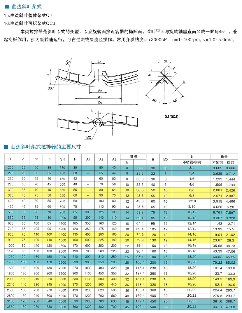 曲边斜叶桨式搅拌器