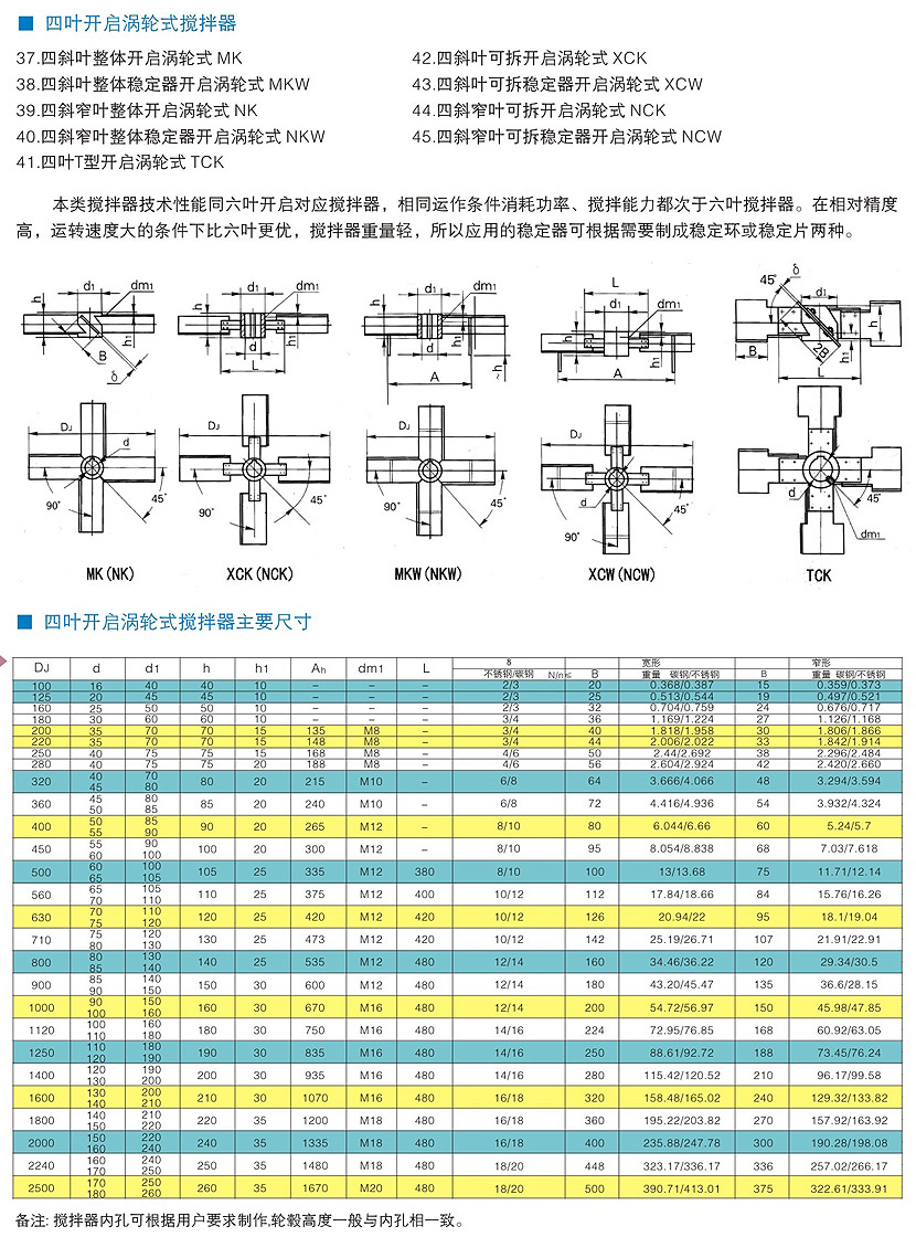 四斜叶开启涡轮式搅拌器